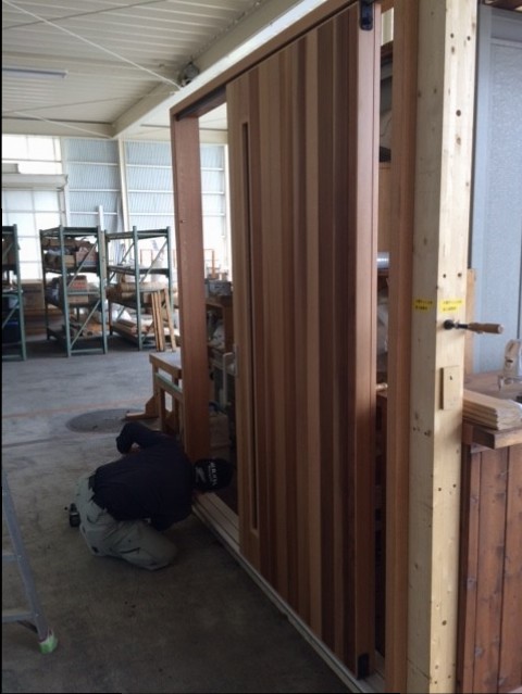 さて、木製玄関引き戸、続々出荷中です!