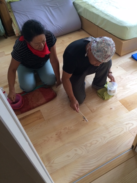 一部床材で不具合が見つかり、クリーニングの職人を連れ、