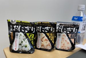また、社内に備蓄している非常食の消費期限が近付いてきたため、作り方を確認しながら社員全員で試食をしてみました🍙